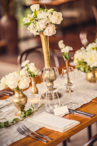 The Reception Set Up was inside the Spicers Tamarind Restaurant. A long wooden table creates an elegant dining table for a sit down dinner party of 8.